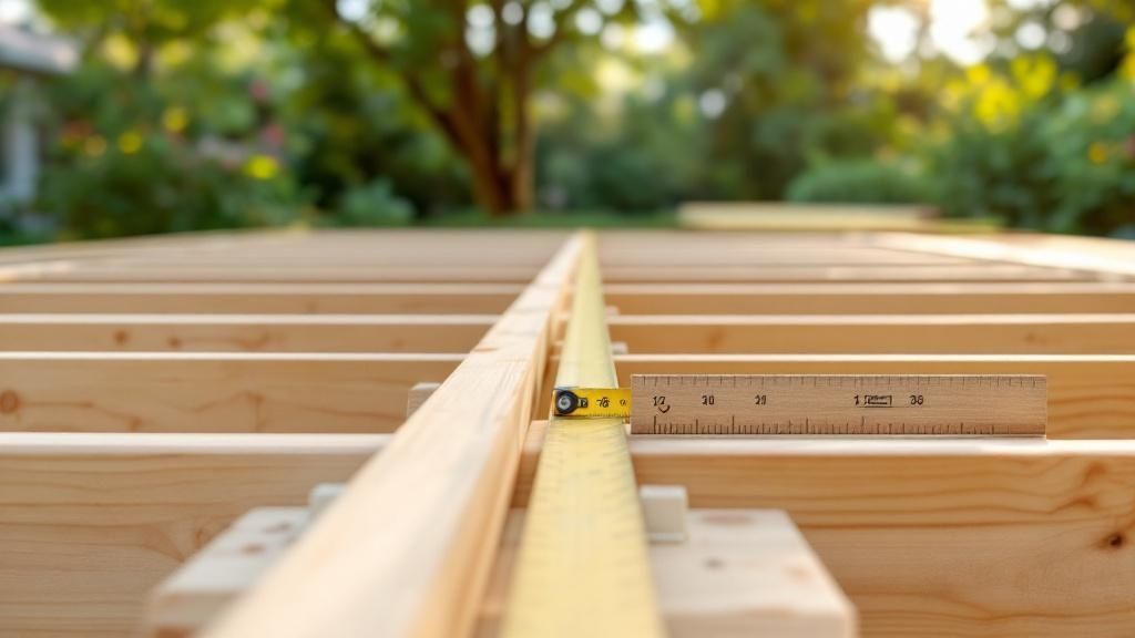 Det allervigtigste mål er afstanden mellem strøerne, som vi altid måler fra center til center (c/c). Hvor tæt de skal ligge, afhænger næsten udelukkende af de terrassebrædder, du har valgt. En god huskeregel er simpel: Jo tyndere eller blødere træ, jo mindre afstand mellem strøerne for at give den nødvendige opbakning.
