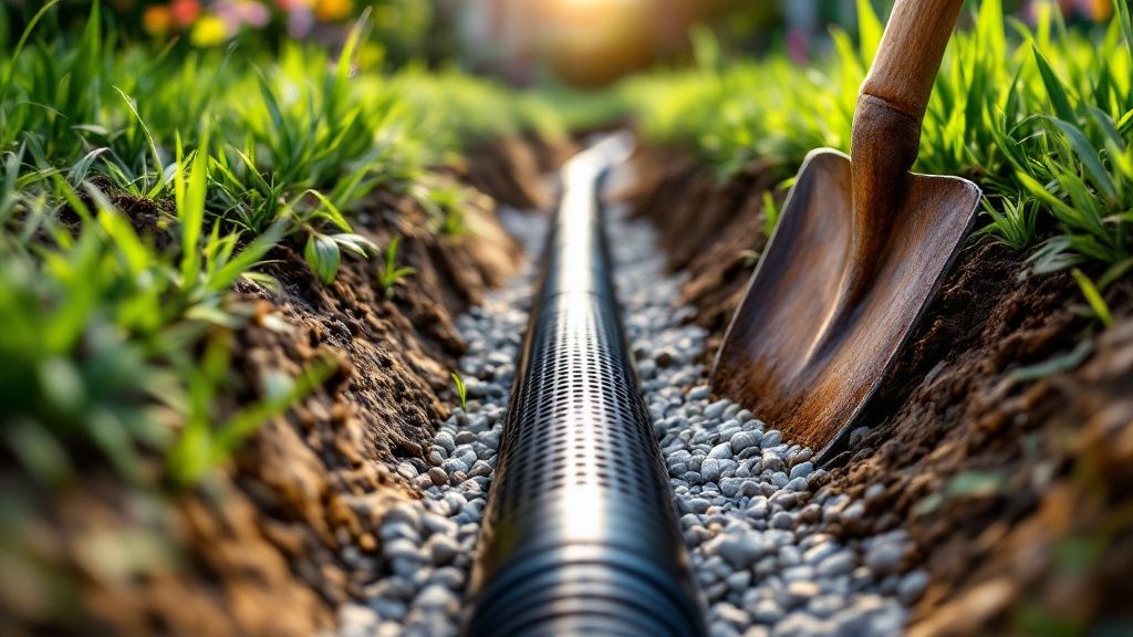 Et velfungerende dræn i haven handler altså om meget mere end at redde din græsplæne. Det er en proaktiv handling, der beskytter hele din ejendom mod de skader, vedvarende fugt kan forårsage. Du kan dykke ned i, hvad en komplet løsning indebærer, i vores uddybende guide om dræning af have.