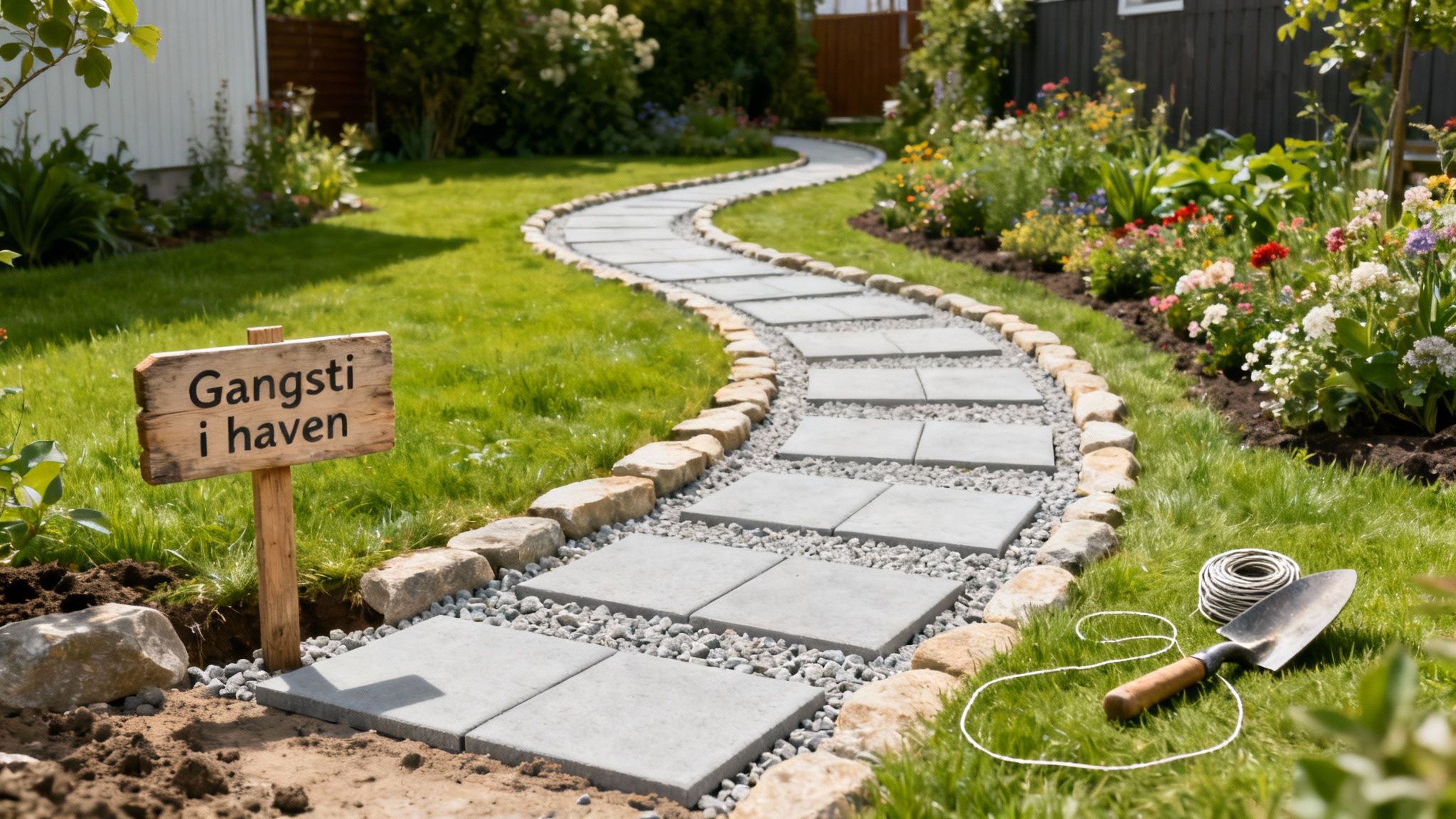 Hele projektet står og falder med et jævnt og stabilt underlag. Hvis din have er ujævn eller skråner, er det en rigtig god idé at starte med en grundig forberedelse af terrænet. Du kan med fordel læse vores guide om jævning af have for at sikre dig det absolut bedste udgangspunkt for din nye sti.