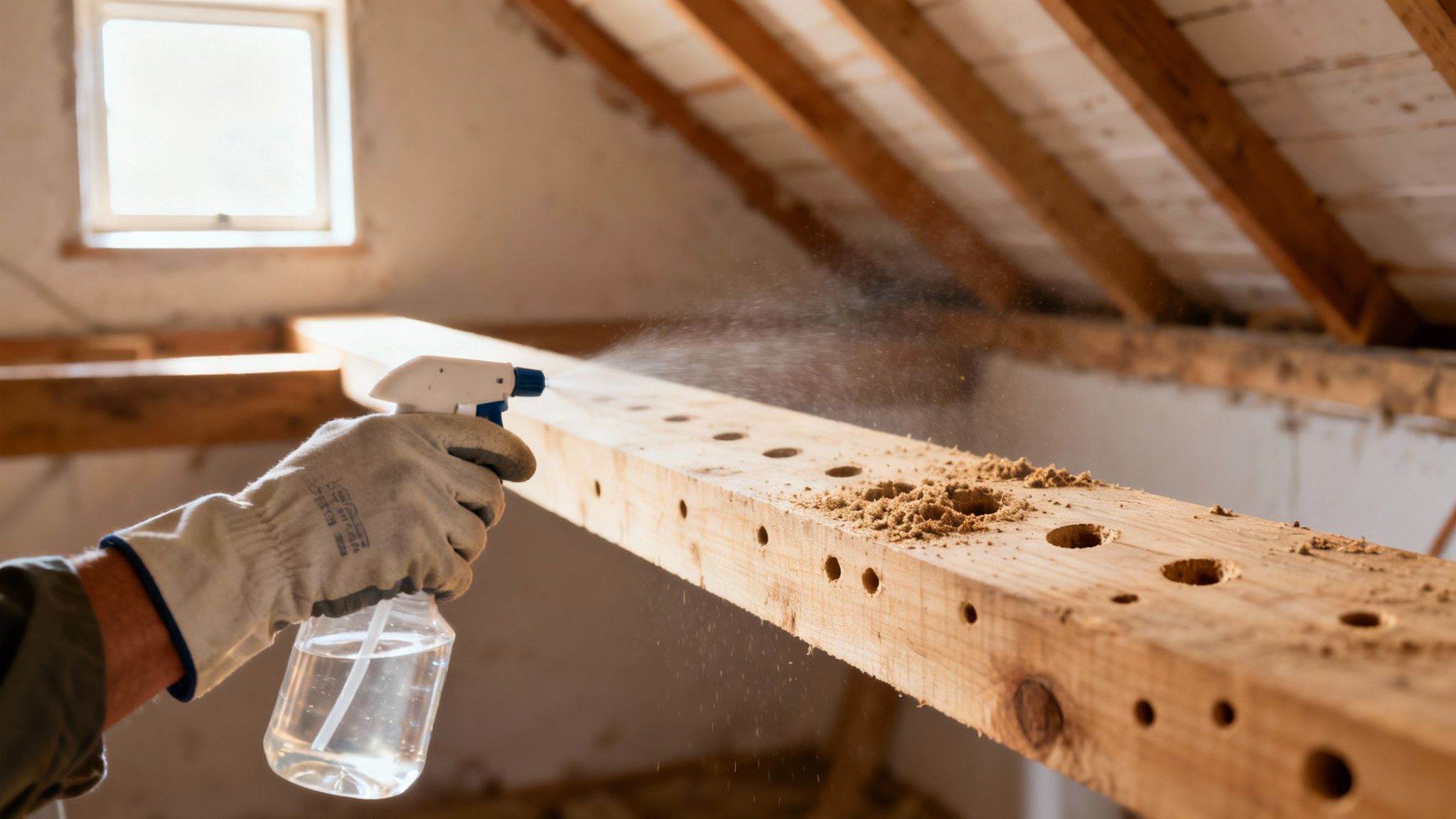 Den mest direkte vej for gør-det-selv-typen er et kemisk træbeskyttelsesmiddel, der er specifikt godkendt til at tage livet af borebiller. Ideen er simpel: Midlet trænger ind i træets overflade og skaber en giftig zone. Når en larve gnaver sig igennem, eller en ny bille vil lægge æg, er det slut.