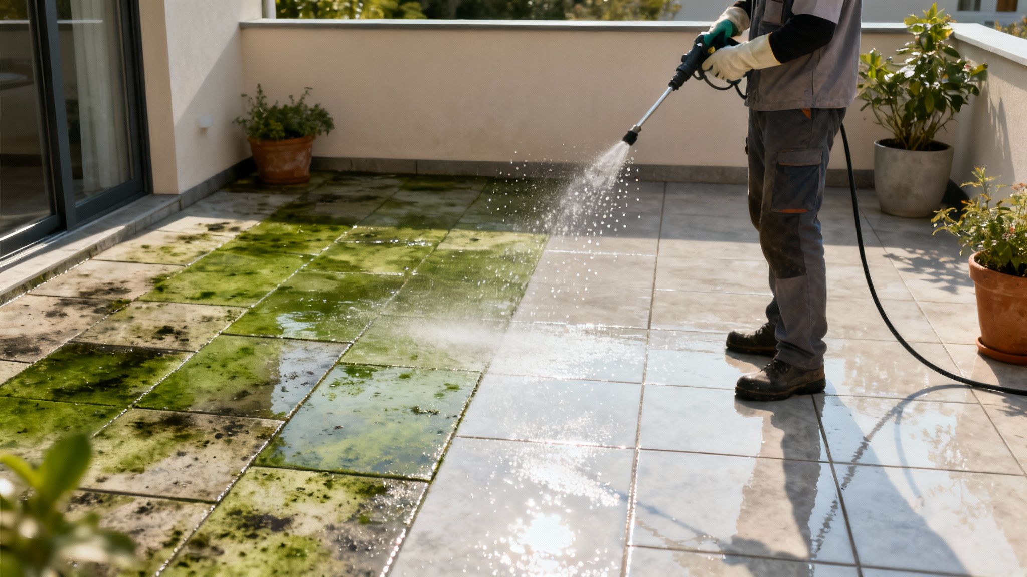 Har du derimod en terrasse, der bager i solen det meste af dagen, kan du snildt vente tre-fire år imellem hver rensning. Mit bedste råd er simpelt: Kig på dine fliser. Når du ser de første spæde grønne eller sorte pletter – det vi kalder flisepest – så er det ved at være tid. Vent ikke, til det har overtaget det hele.