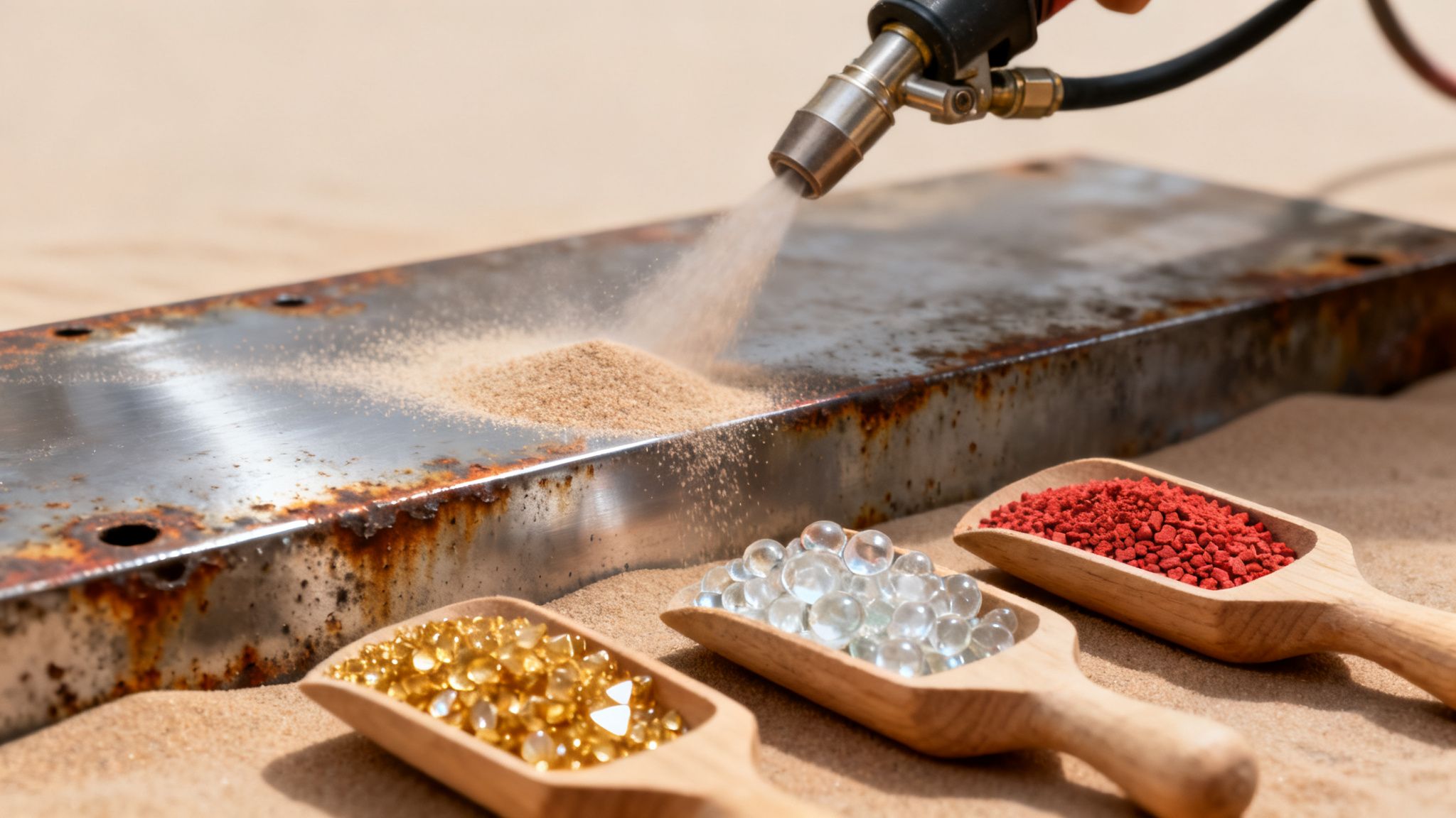 At vælge det rigtige sand til sandblæsning er lidt som at vælge det rigtige værktøj i værktøjskassen. Griber du fat i det forkerte, kan du ende med at gøre mere skade end gavn, eller også kommer du slet ikke i mål. Selvom vi i daglig tale kalder det "sand", dækker begrebet i dag over en hel palet af specialiserede slibemidler. Og valget af materiale er helt afgørende for et godt resultat.