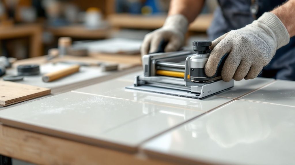 At skulle i gang med at skære fliser kan godt virke lidt skræmmende, men en god forberedelse tager dig det meste af vejen. Det absolut vigtigste er at kende det materiale, du står med i hænderne. Der er en verden til forskel på en porøs, keramisk flise og en stenhård porcelænsflise, og det valg dikterer fuldstændig, hvilket værktøj der giver dig det bedste resultat.